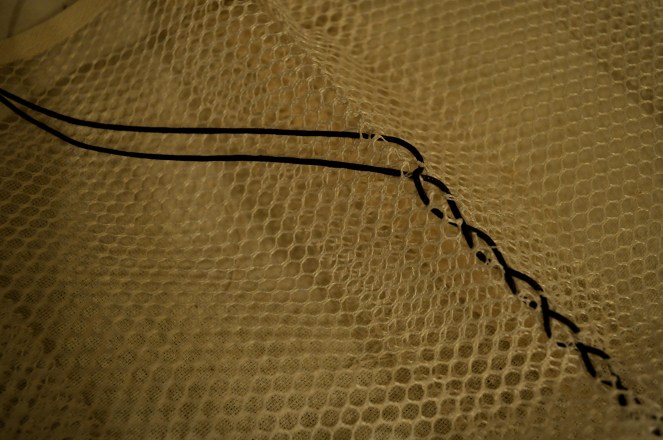 Then I laced them together, tying a bow at the top.