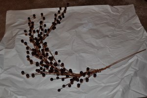 Twist six strands of cranberry bursts together for a small wreath.