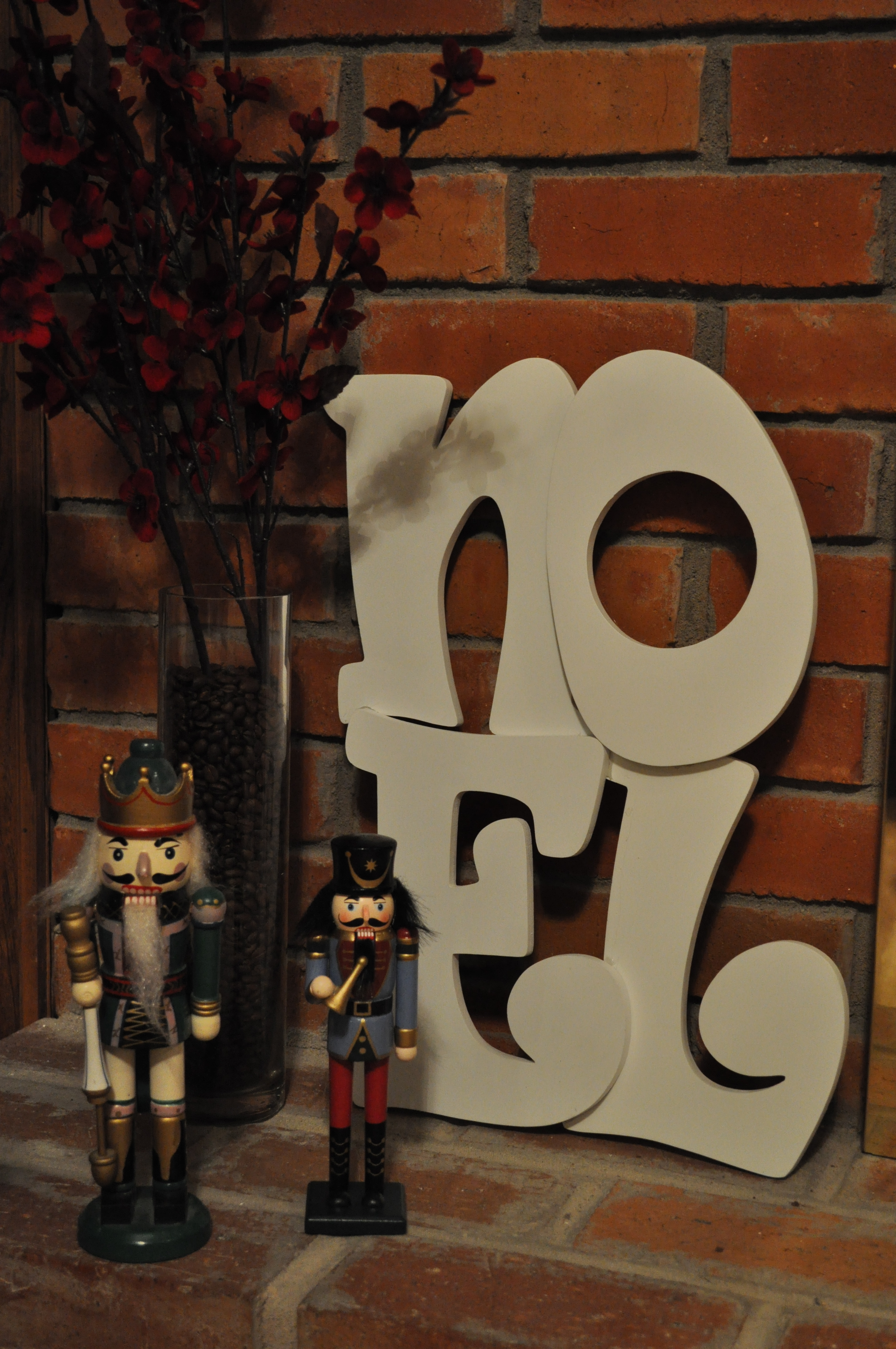 Glue wood letters together to spell holiday words.