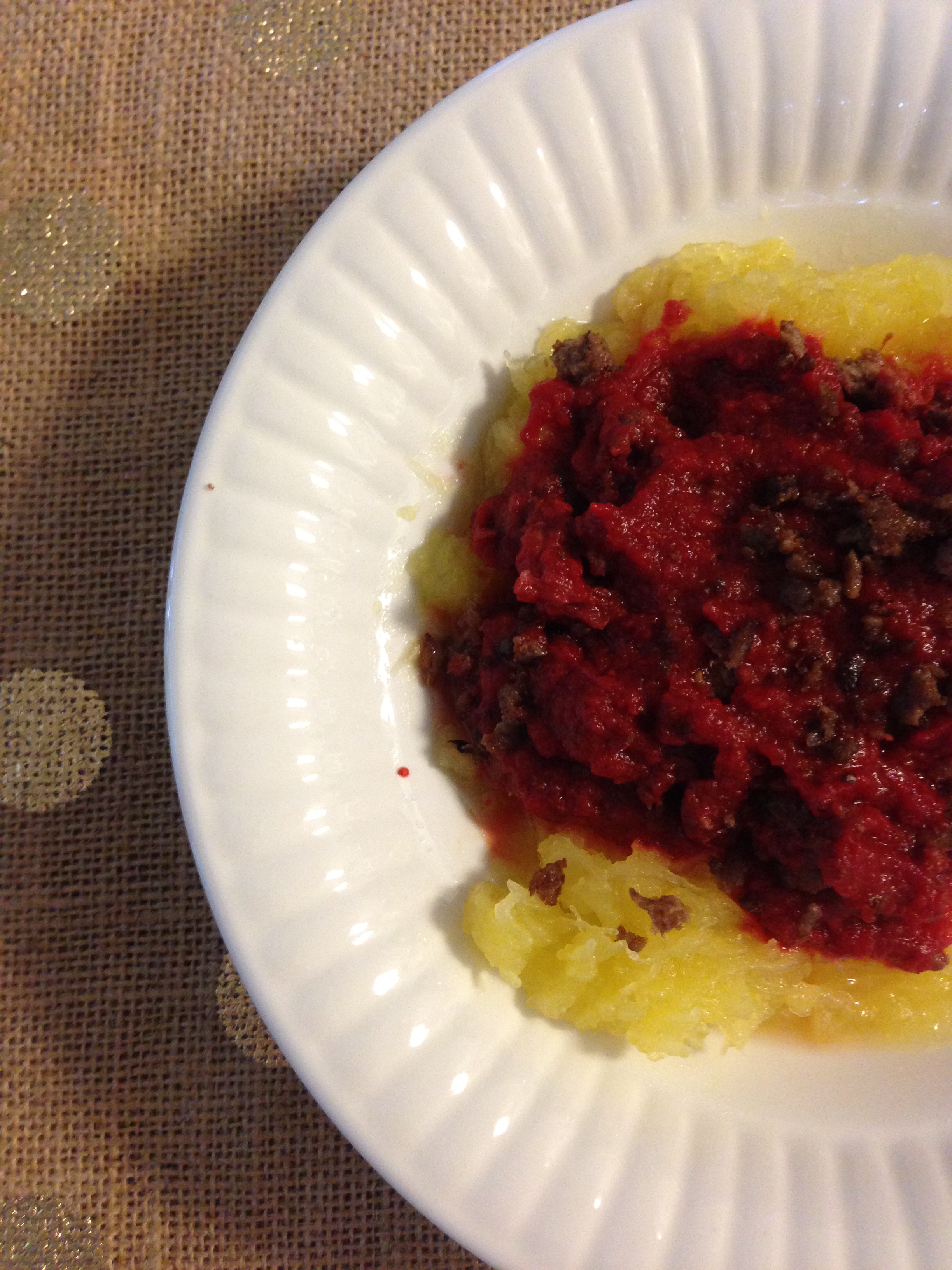 Summer vacation means extra time to try cooking new dishes. This week’s experiment was no-mato sauce for spaghetti squash spaghetti. I love spaghetti, but tomatoes are not on the friend list. Just for good measure, I wanted to leave out garlic and onions, because they’re a little suspect at the moment. I can’t say much for how the squash itself turned out — I think I need more practice on that one — but the sauce is very tasty. Of course, this is coming from someone who hasn’t had spaghetti in 10 months. ;)