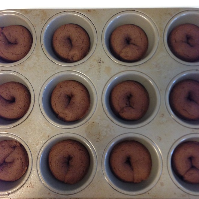 I also did not have a doughnut pan, so I piped the batter into a muffin pan, which worked pretty well. I imagine a muffin pan for over-sized muffins would leave a small hole in the doughnuts.
