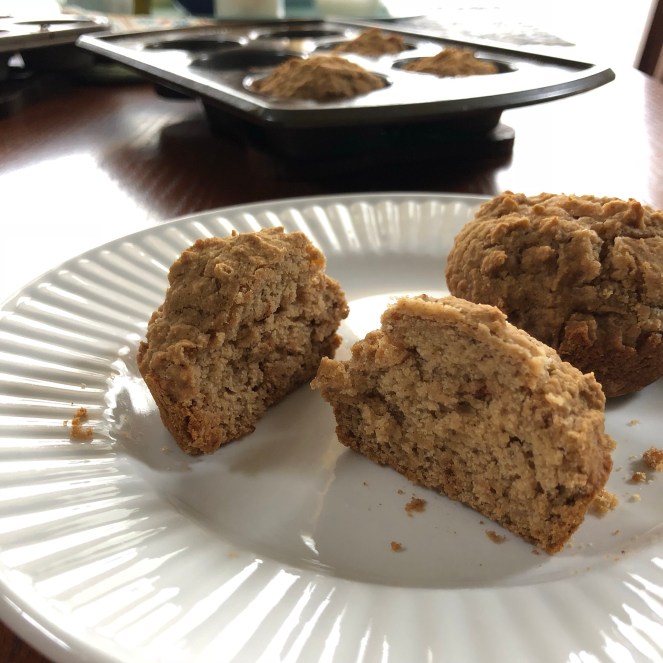 All this led me to bring back an old muffin recipe and tweak it just a bit (click for original post). One thing I remember is that the muffins were good, but crumbly and the taste could have been better.