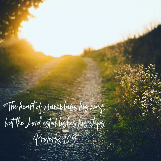 Proverbs 16:9 reminds me that there is a plan bigger and more sure than mine. The Lord has a plan that cannot be altered by human will. It is also a reminder that I do not secure my future- that is God’s doing. So, I’ll make plans and work toward them, but I’ll rest in the knowledge that is does not depend on my power to establish them.