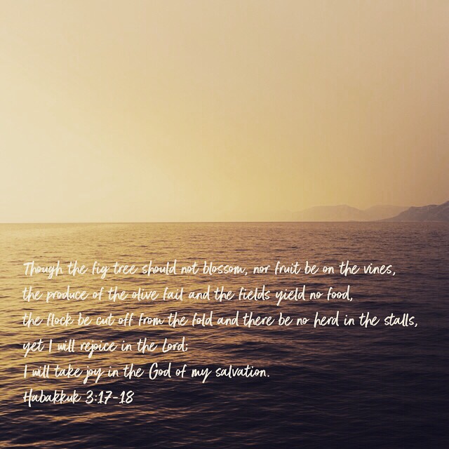 Whatever thing my life seems to lack does not diminish the goodness of God to me. God’s grace and love are not measured by wealth or food or health, what I receive or what I am not given. The joy of his Holy Spirit transcends all situations, even the deepest of joys and the greatest of griefs. His love is measured by Himself- the God who is good to His children and who never fails. Rejoice, therefore soul, in His salvation.