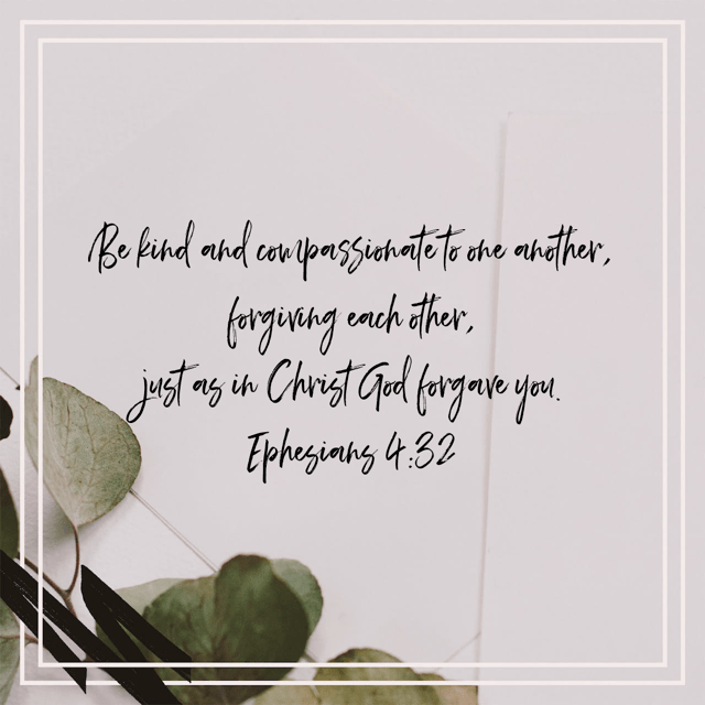 “Be kind and compassionate to one another, forgiving each other, just as in Christ God forgave you.”