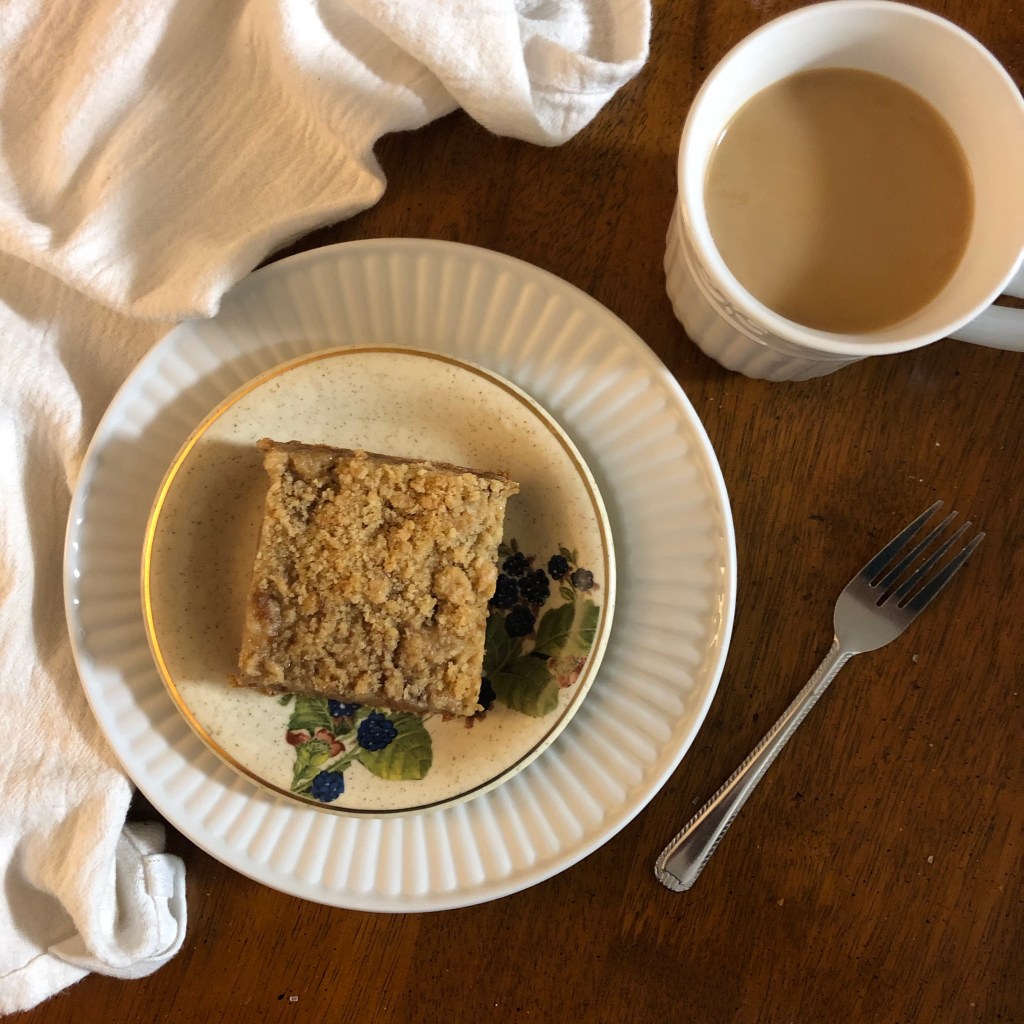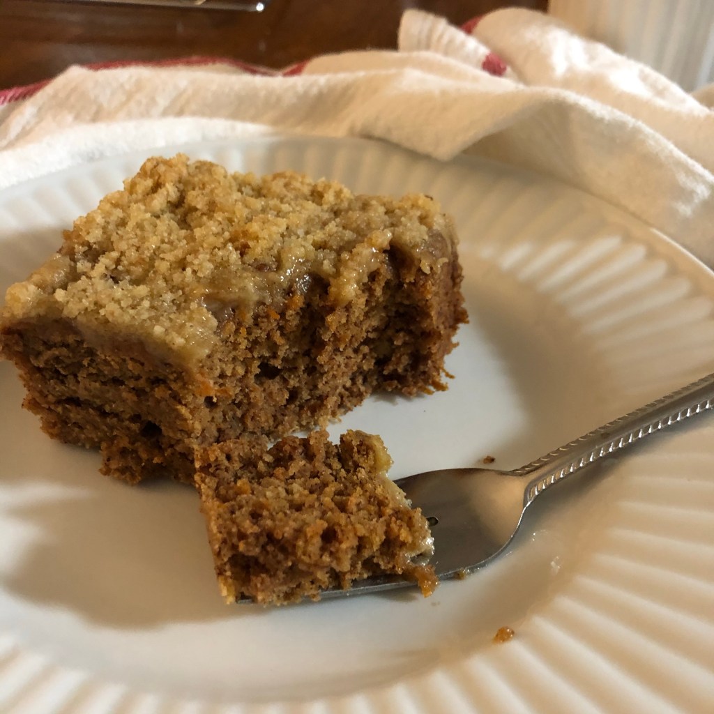 Pour into a greased 11×7 pan (although, an 8×8 square should work with more bake time or a 9×13 if you don’t mind the cake being shorter). For the crumble, combine 1/2 c. general purpose flour, 1/4 c. cane sugar, 1/2 c. brown sugar, and 3-4 TBS vegan butter. The mixture should be crumbly. Sprinkle desired amount over cake. Bake in preheated 350 F oven for 30-35 minutes. Cake will be done when toothpick inserted comes out clean. Let cool in pan. Enjoy!